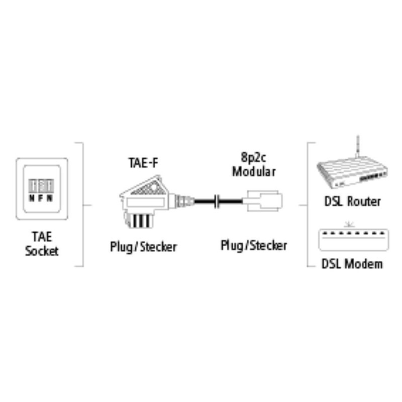 - For connecting DSL modems/DSL router with input modular socket 8p2c to the telephone socket e.g. for Alice Box, Speedport, FritzBox
