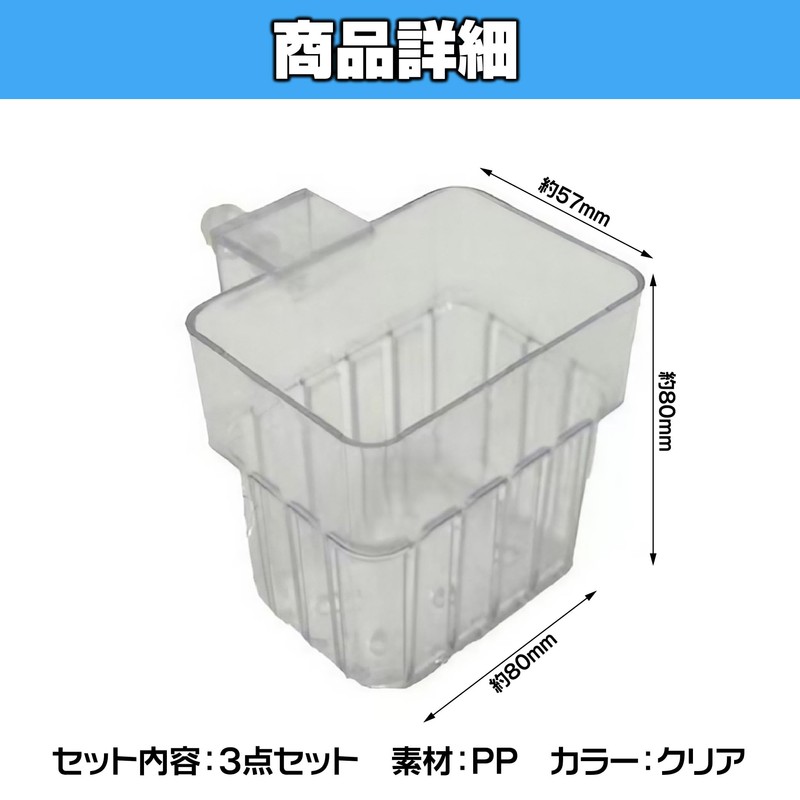 - Set Contents: 3-piece set. Size: Approx. 3.1 x 2.2 x 3.1 inches (80 x 57 x 80 mm). Material: Polypropylene. Color: Clear. *Depending on your monitor settings, there may be slight differences in the appearance of the product