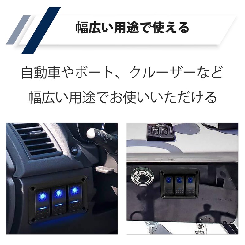 SUPERIOR WATERPROOF: This boat switch has excellent water resistance which is unaffected by water from all directions. It can also be installed in areas that are susceptible to rain and splashes of water.