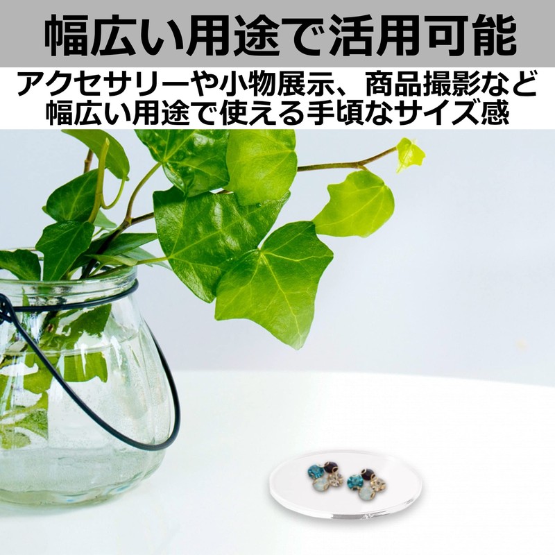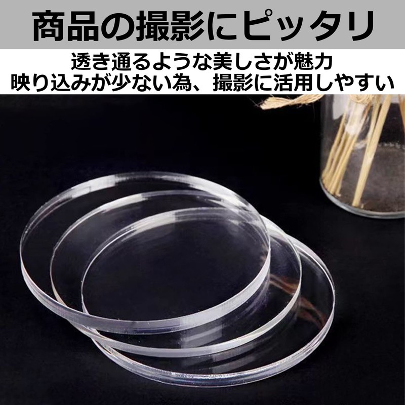 - Highly Transparent Display Stand: This is a 5-piece acrylic display stand with excellent clarity. It is a round type and is about 0.5cm thick. Can be used as a base for items such as interior objects