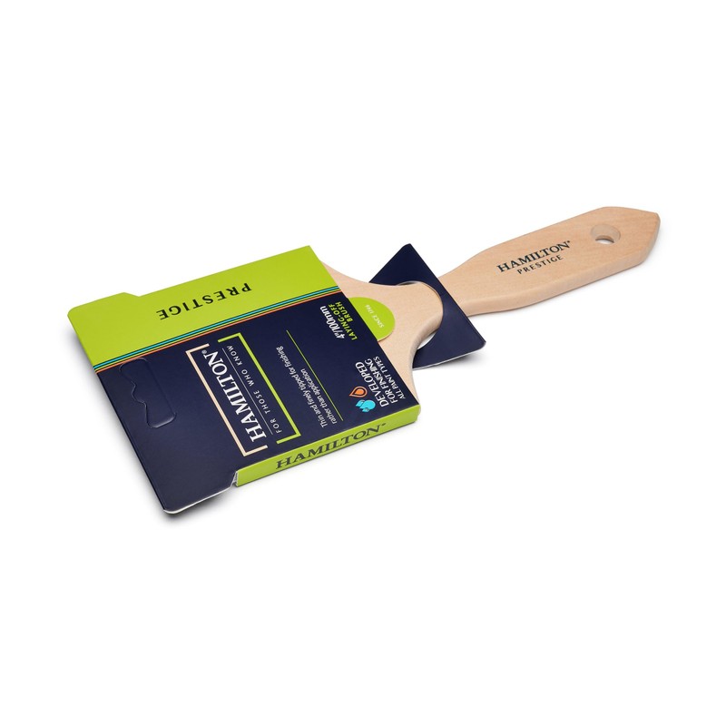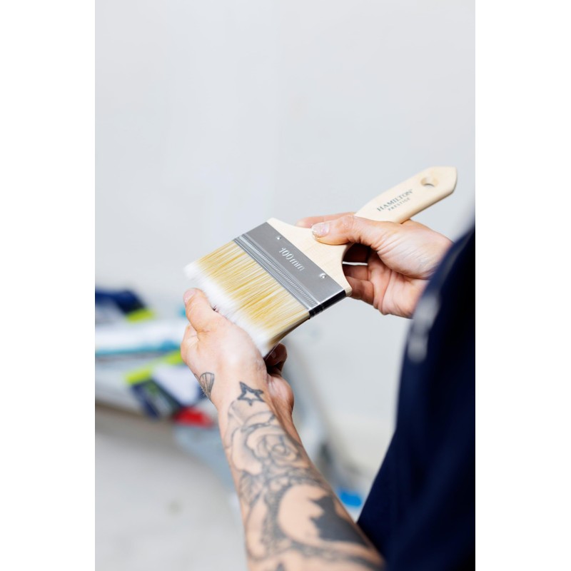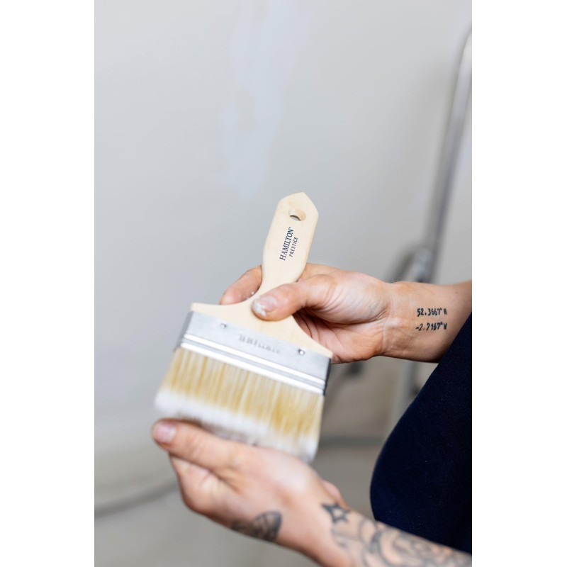 - Thin brush with fine synthetic filaments for finishing, not suitable for application