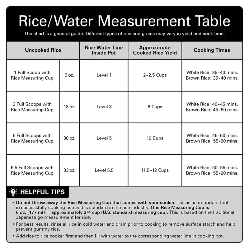 - * This appliance holds 12 cups of cooked rice or 6 cups of uncooked rice. One rice measuring cup equals 6 oz. (177 g) or approximately 3/4 cup U.S. dry measure. This is based on the traditional Japanese gō measurement.