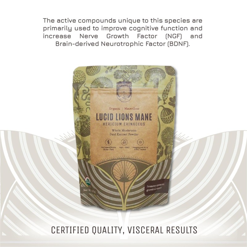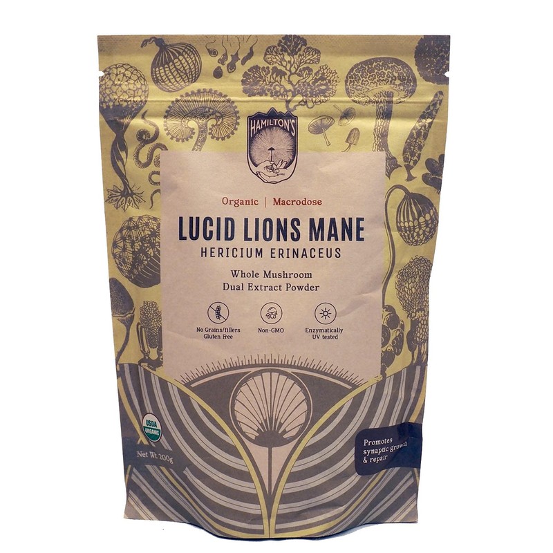 Hamilton’s Lucid Lion’s Mane | Organic Mushroom Extract Powder for Synapse Repair, Nerve Growth Factor, Focus, Memory, and Concentration | High Potency | 30% Beta Glucans | GF, Non-GMO, Vegan (200g)