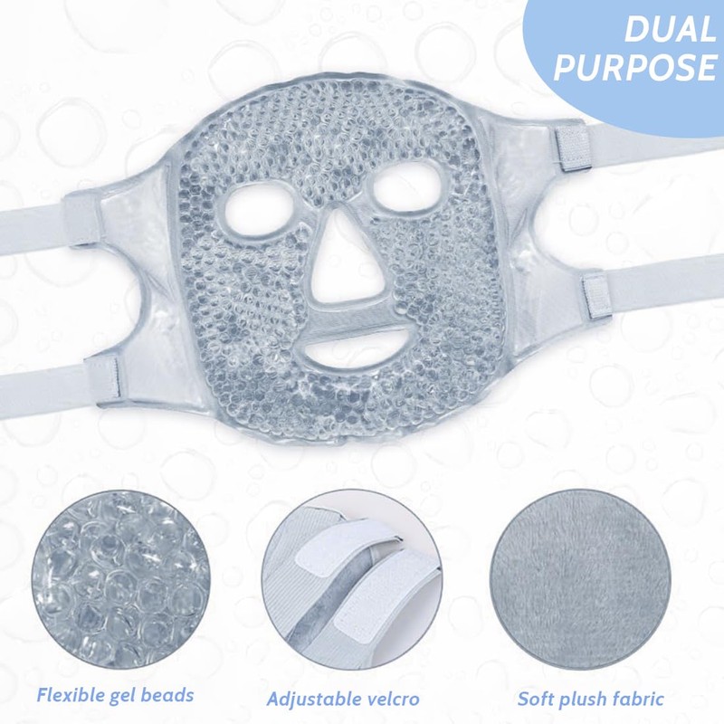 HAMKU 1 Artikel Kühlmaske Gesicht, kühlende kopfmaske, ice mask, augenkühlmasken nach op, Beidseitig anwendbar, Mit hochwertigem Gel Kühlpads Gesicht Kühlende Gesichtsmaske(grau)