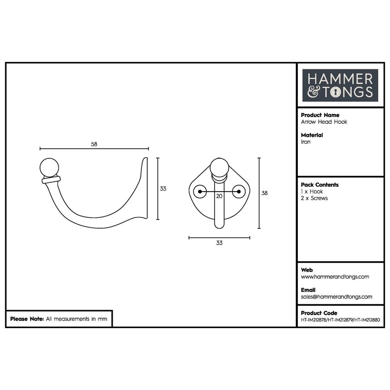 - Add an authentic antique finish to any cloakroom, hallway or bedroom door with our Hammer & Tongs Arrow Head Hook.