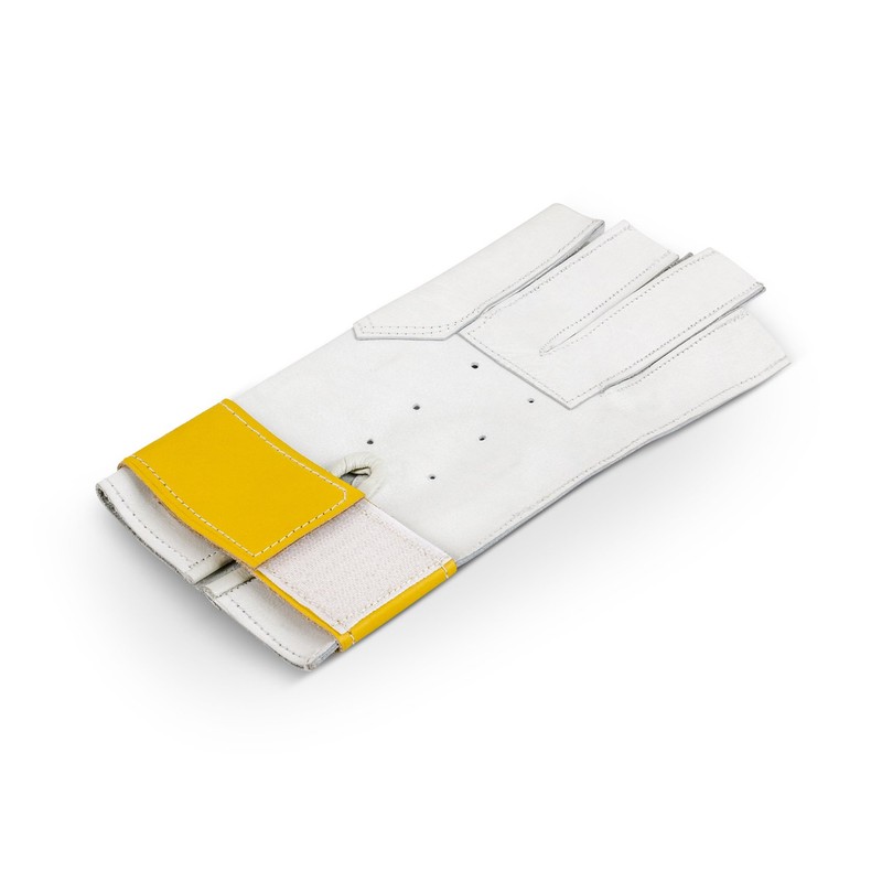 - An additional leather reinforcement is sewn under the individual fingers to adequately distribute the large forces on the throwing handle