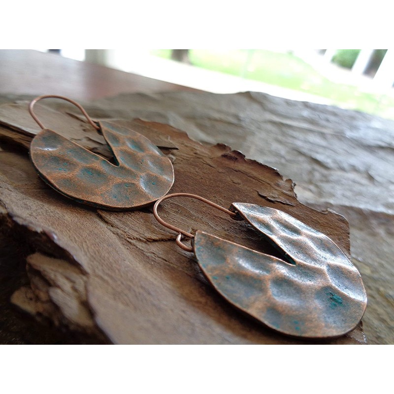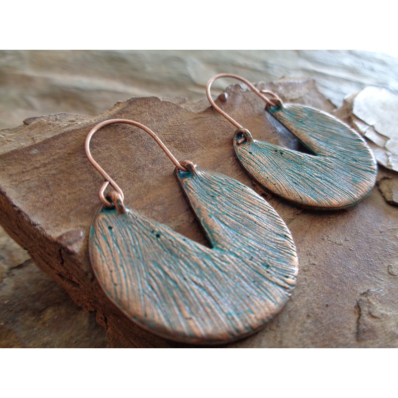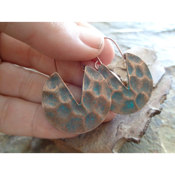 Hammered copper patina circles: side earrings