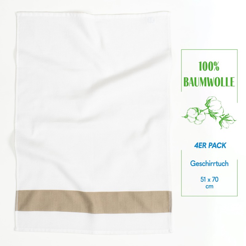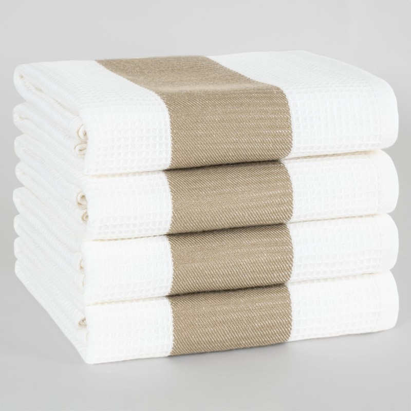 Hammetex Set of 4 50 x 70 cm Waffle Bath Towels Made of 100% Cotton - Kitchen Towel with Hanging Loop - Absorbent, Quick Drying & Oeko-Tex Certified - Beige