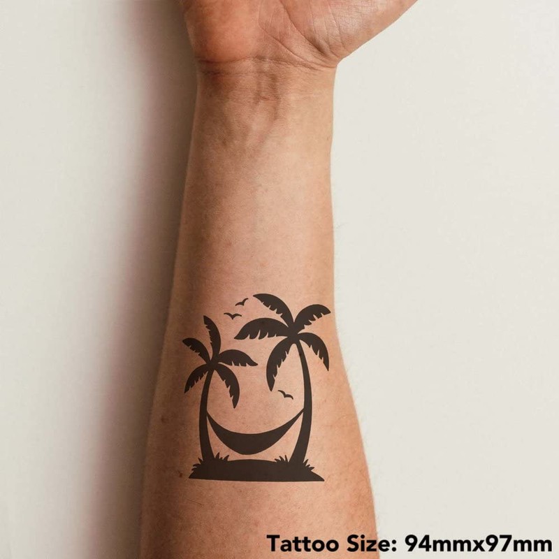 'Hammock & Palm Trees' Temporary Tattoo - Water Resistant, Skin-Safe, Non-Toxic Transfer (TO00049750)
