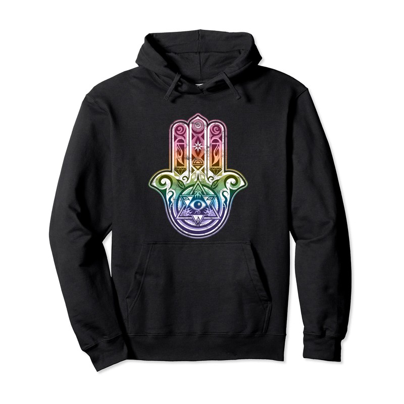 Hamsa Hand, All Seeing Eye, Lucky Charms, Fortune, Rainbow Pullover Hoodie