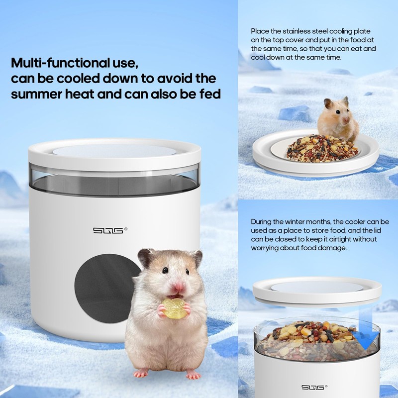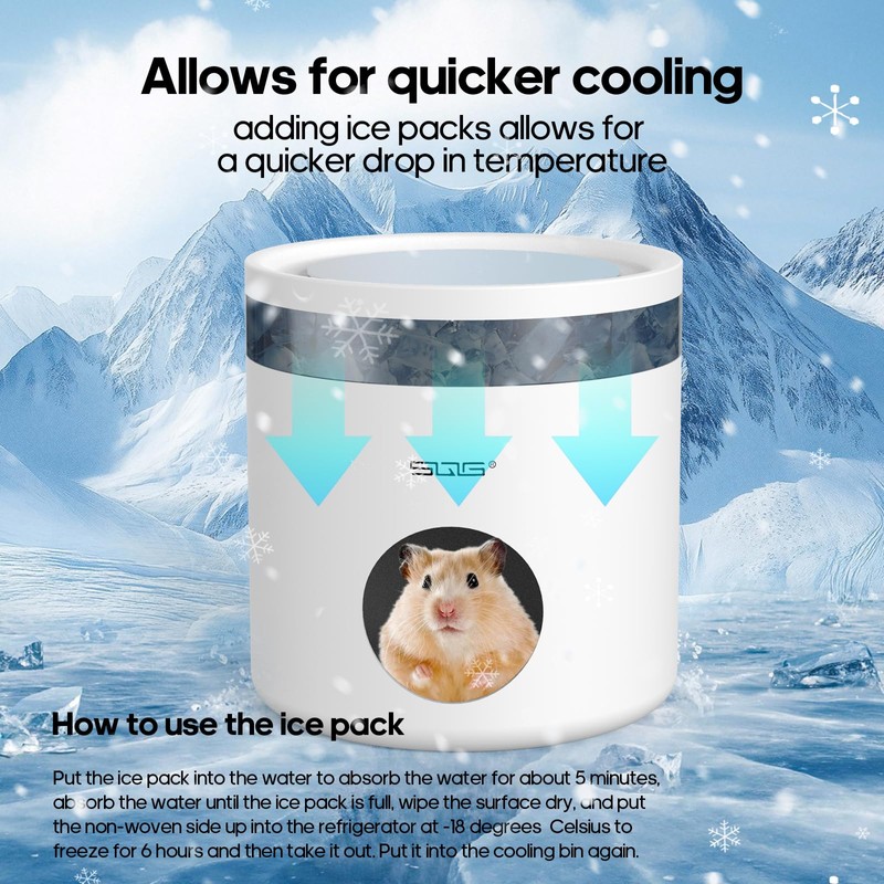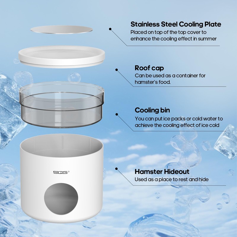 - 【Design】It consists of three parts: the top cover, the compartment, and the hiding place. The accessories have stainless steel cooling plates and cooling ice packs. It provides a variety of uses such as cooling, feeding, perching, etc. Overall smooth and easy to clean. It can effectively shade the light, reduce noise and protect the hamster from sweat glands, and is afraid of heat and prone to heat stroke.