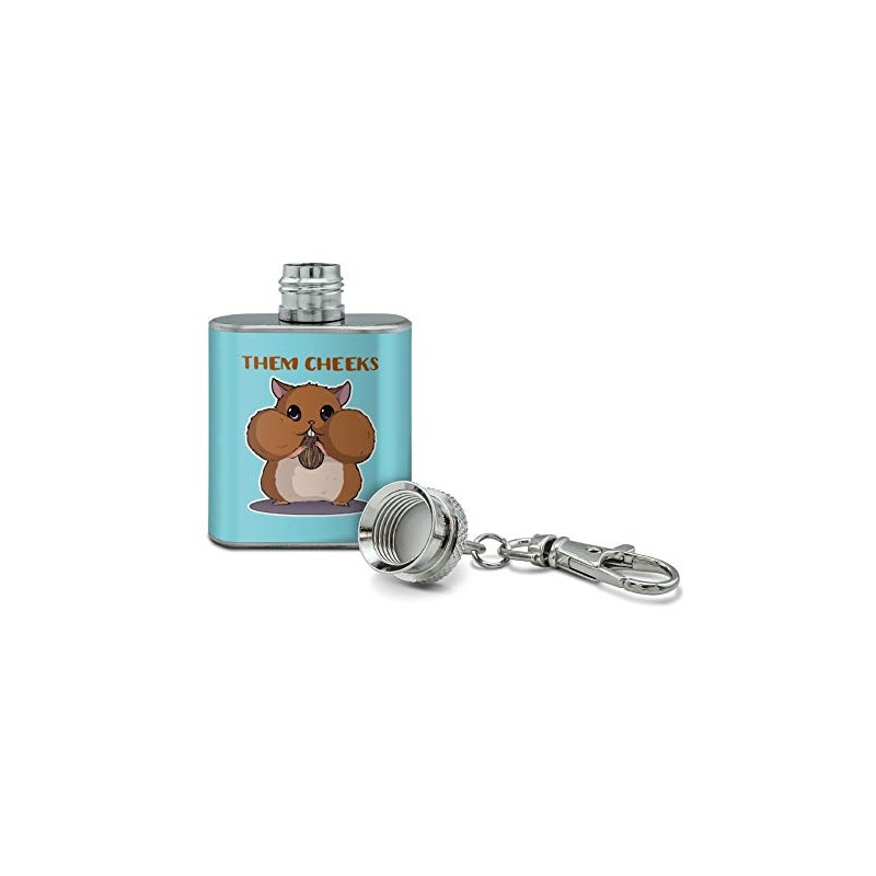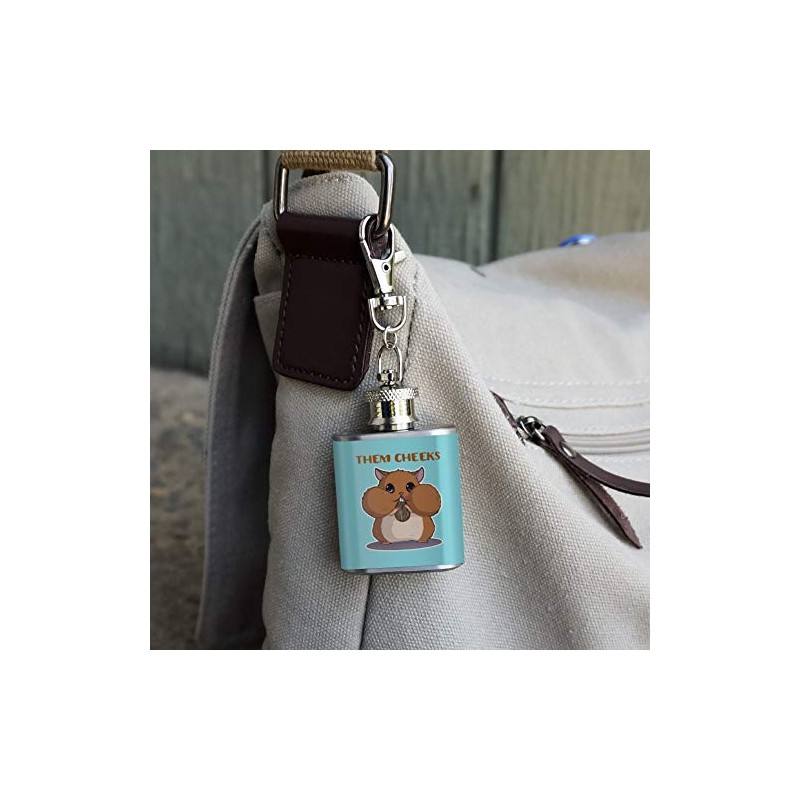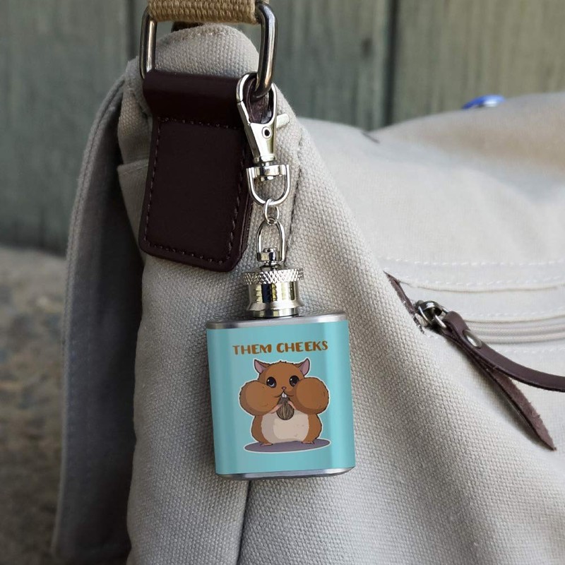 Hamster Them Cheeks Eating Sunflower Seed Stainless Steel 1oz Mini Flask Key Chain