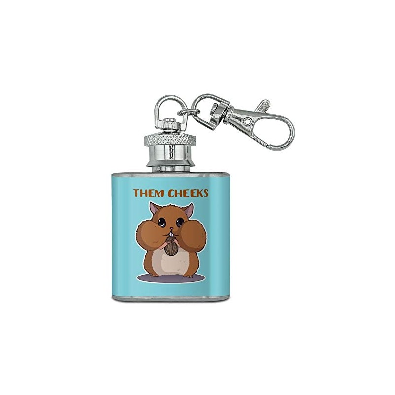 Hamster Them Cheeks Eating Sunflower Seed Stainless Steel 1oz Mini Flask Key ...
