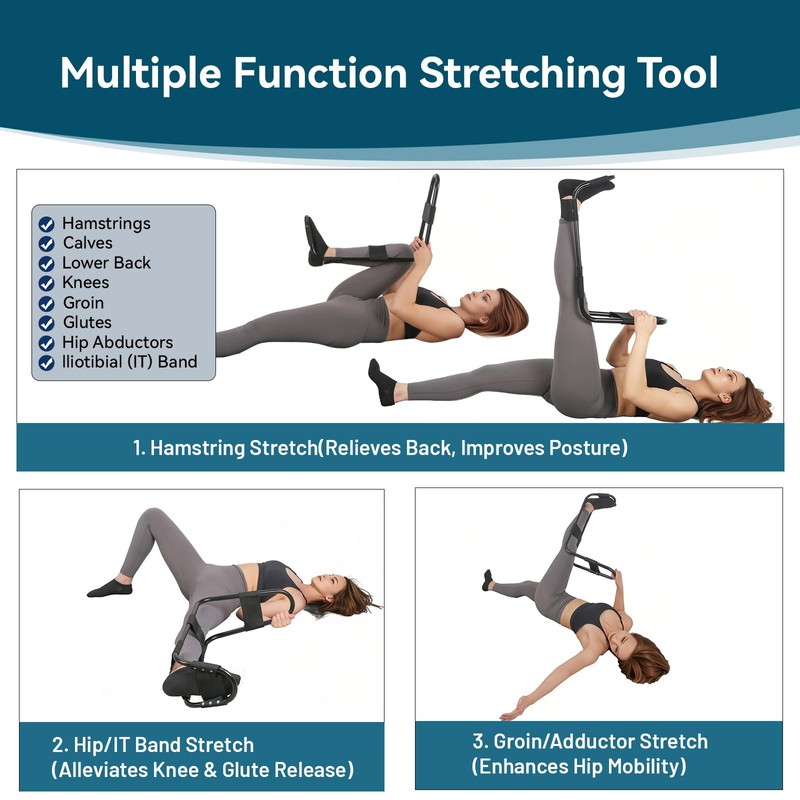 - All-In-One Stretching Tool - Deeply targets hamstrings, calves, hips, lower back, groins,knees,and glutes to enhance performance and daily mobility, no need for multiple devices or bands
