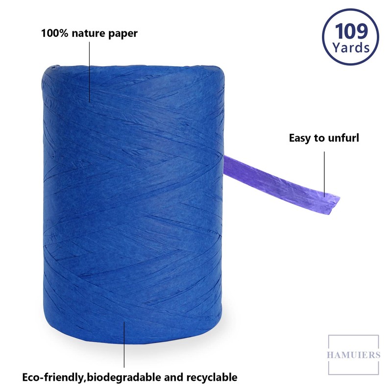 HAMUIERS Raffia Ribbon for Gift Wrapping, Packing Paper Twine Ribbon, Craft Ribbon for Crochet - 1/4'' Wide, 109 Yards, Royal Blue