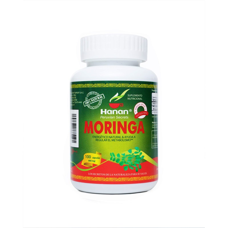 Hanan Moringa Superfood Powder Capsules 100 ct. Pure Moringa oleifera Lam from Peru