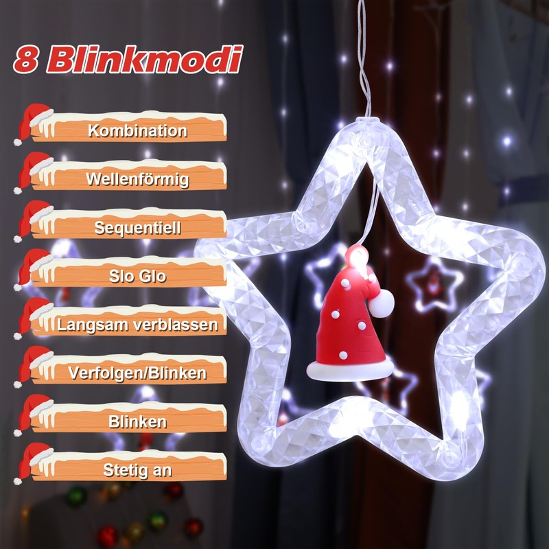 - Creative decorations for fun: 10 star-shaped light curtain Christmas windows, 100 LED lights, with DIY Christmas decorations, with which you can create a unique festive atmosphere with your own hands.
