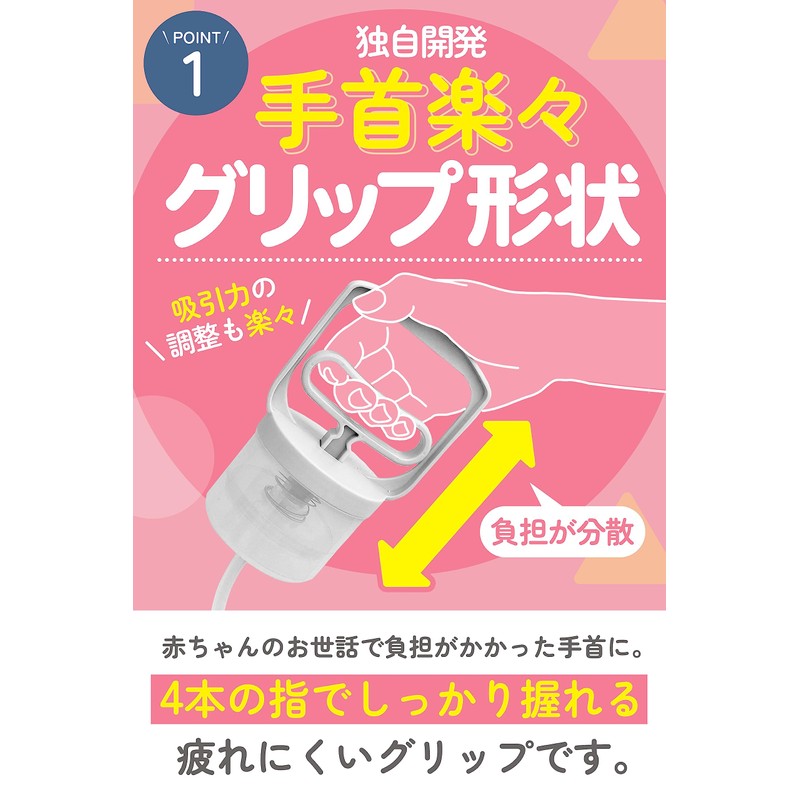 - ✅【独自開発のグリップ形状】私たちの子供用鼻水吸引器は独自開発のグリップ形状によって握力に負担がなく、安定して握ることができます。また、デリケートな赤ちゃんの鼻水吸引に対して、吸引力の調整もしやすいので、鼻水吸引器による赤ちゃんへの負担がありません。更に手動なので、赤ちゃんが怖がる電動音もなく、眠りを妨げません。
