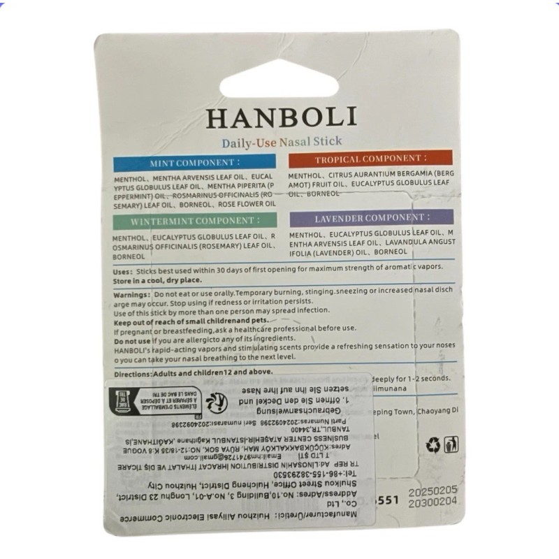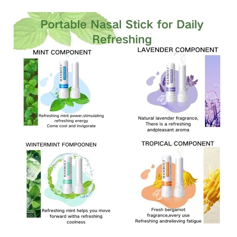 HANBOLI Nasal Stick 4 Pack • Breathe Like Never Before • 4 Scents • 100% Natural