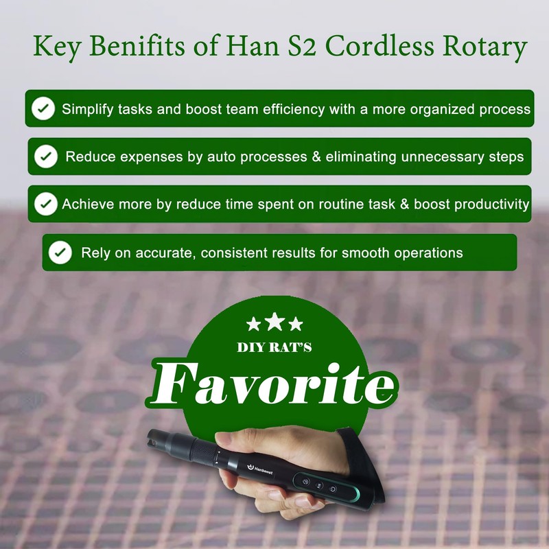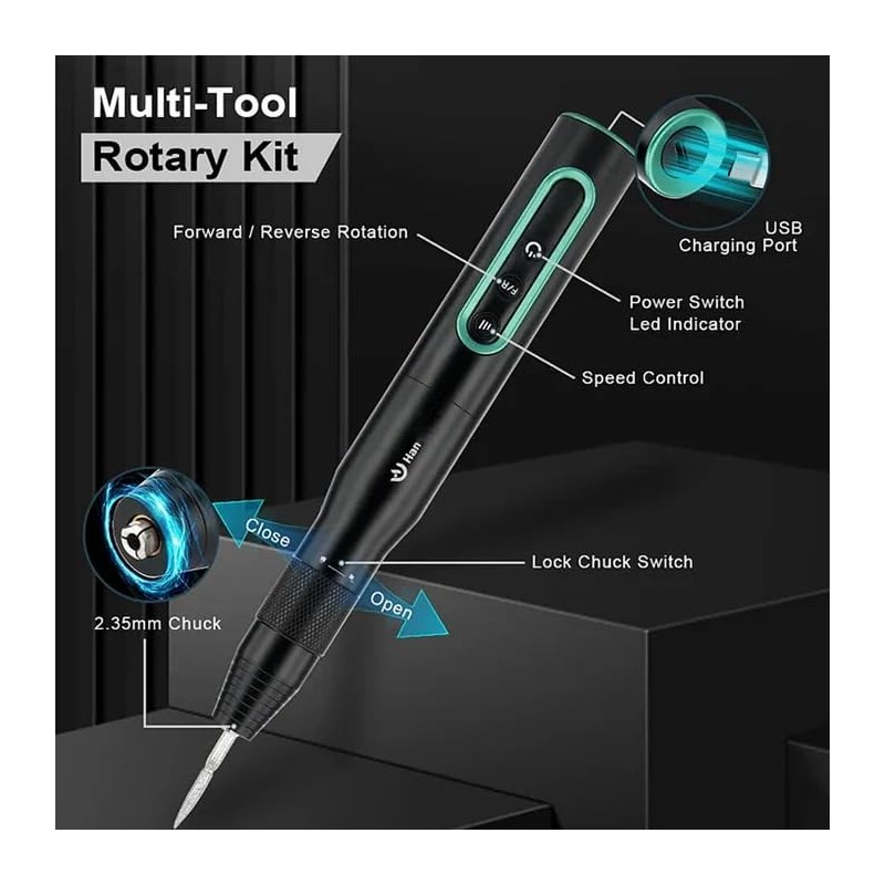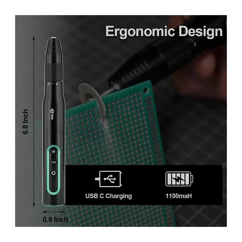Unleash your creative potential with the HanS2 Electric Cordless Rotary Tool Kit, a versatile powerhouse designed for DIY enthusiasts, craftsmen, and hobbyists. This comprehensive tool delivers impressive performance with its robust 30,000 RPM motor and enhanced torque of up to 200 gcm, making it perfect for a wide range of applications. The innovative Twist & Lock Chuck system allows for quick and effortless bit changes, streamlining your workflow. Whether you're polishing, drilling, sanding, grinding, cutting, or carving, this multi-functional tool kit comes equipped with an extensive array of accessories to tackle various projects. The cordless design offers maximum mobility and convenience, while the ergonomic build ensures comfortable handling during extended use. Perfect for detailed work in home improvement projects, artistic endeavors, and precision tasks, the HanS2 combines power, versatility, and control in one sophisticated package. The kit includes a convenient storage case to keep all components organized and protected. Transform your creative vision into reality with this professional-grade rotary tool that's built to deliver consistent, reliable performance.