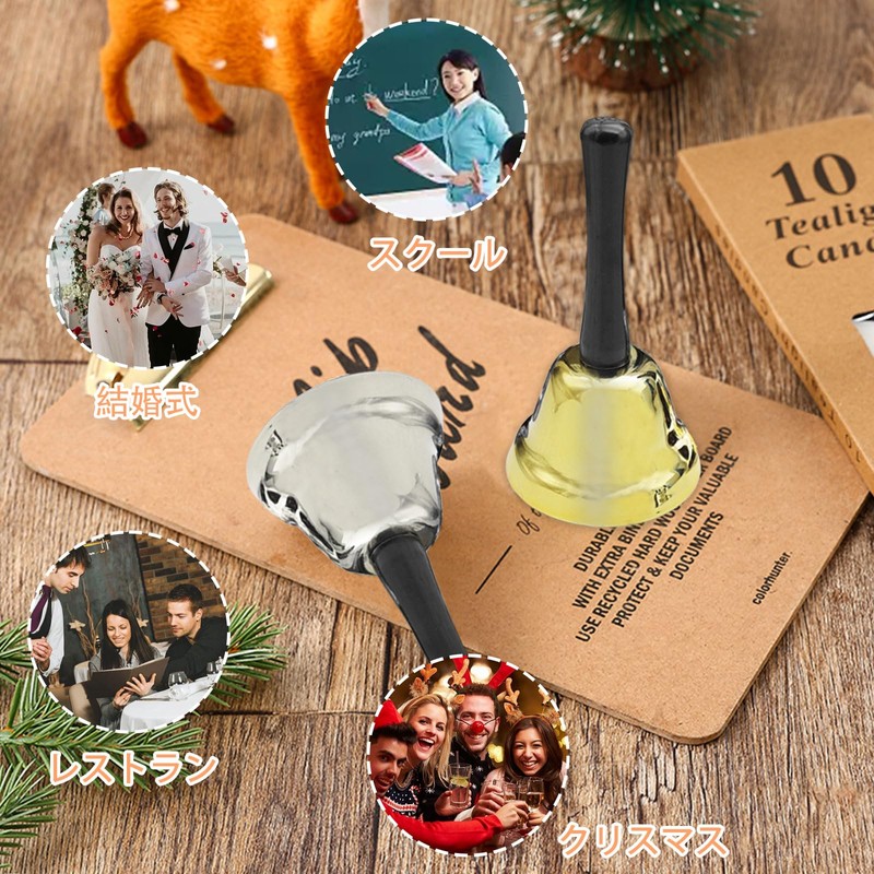 Hand Shaving Bell: This handbell is beautifully crafted. Beautiful tone and fashion look, available in silver and gold. Makes a great Christmas gift! Material: Metal and plastic handbells are rust resistant and durable. Comfortable and easy to hold, very attractive. Easy to use: Just shake the bell repeatedly and shake it to make a loud and clear sound. Also recommended as a bell for dinner, class, games, pet training, or awakening someone. 【Widely Used】Can be used as a call bell in restaurants, hotels, stores, etc. Great for raffles, raffles, events, children's gatherings, competitions, festivals, Christmas, and other events. 【Package】1 x Hand Swing Bell Size: about 7.5cm x 13cm