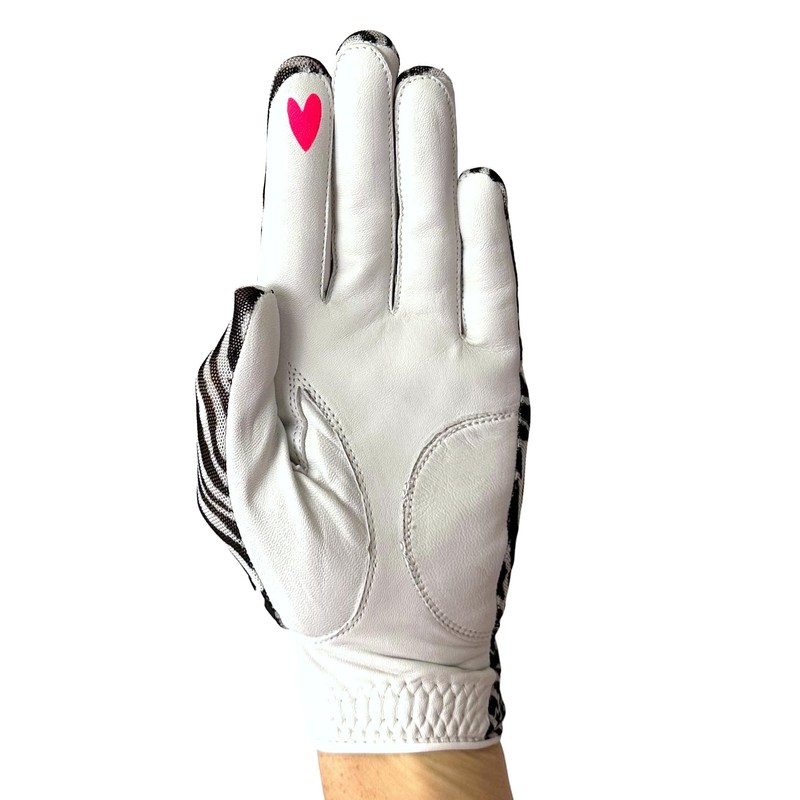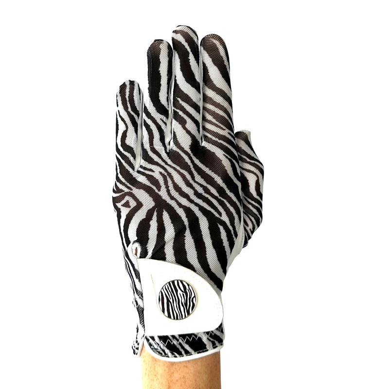 Hand Candy Golf Glove – Premium Cabretta Leather – “Zebra” – Left Hand Women's Golf Glove with Matching Ball Marker (Large)