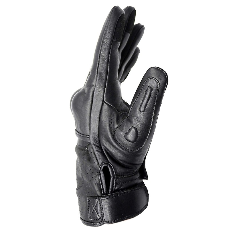Provides maximum protection while being amazingly comfortable. Made with top quality full grain genuine cowhide leather for maximum abrasion resistance. Perfect motorcycle gloves for multi-season motorcycle bike riding! The glove features perforated vent holes and a moisture-wicking breathable lining for superb airflow, perfect for long and short trip bike riding. Velcro wrist closure allows for a snug and comfortable fit. Pre-curved fingers ensure a perfect fit at the first ride! The Hand Fellow Motorcycle gloves is extremely durable and protective yet feels amazingly soft and supple. Enjoy optimum bike riding performance while maintaining fit and flexibility! Features double layered leather at the knuckle area with padded knuckles for maximum impact resistant knuckle protection. Thumb and two fingers are touch-screen, enables using a mobile phone while wearing the motorcycle gloves. Features an integrated leather pull-tab for enhanced dexterity and ease of use.