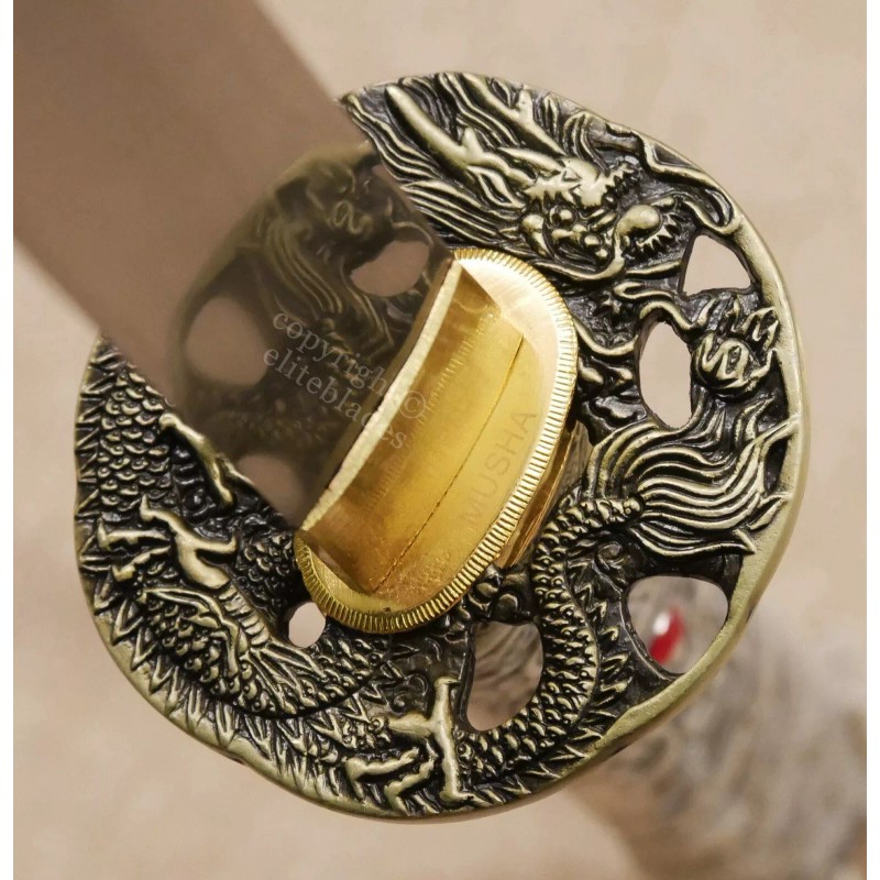 Features Blade: Fully functional traditionally forged and heat tempered 1045 carbon steel blade with visible hamon. Hand honed to a very sharp edge.