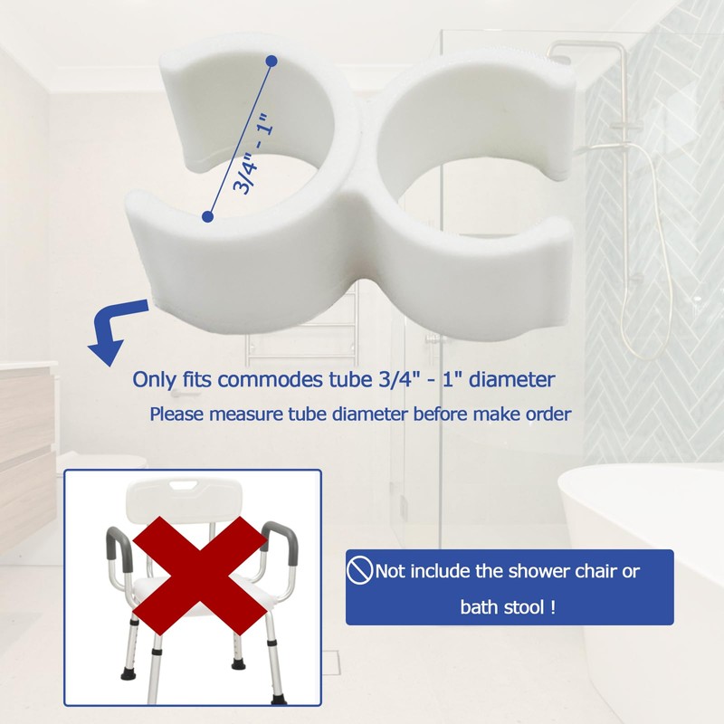 Only fit for bath chairs with a diameter of 3/4" to 1".
