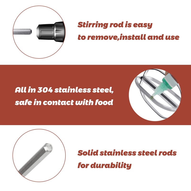 - Wide Range of Uses — Not only can it be used to stir eggs,chocolate and batter,pittes and cream,it can also be used to stir other liquids such as paint.