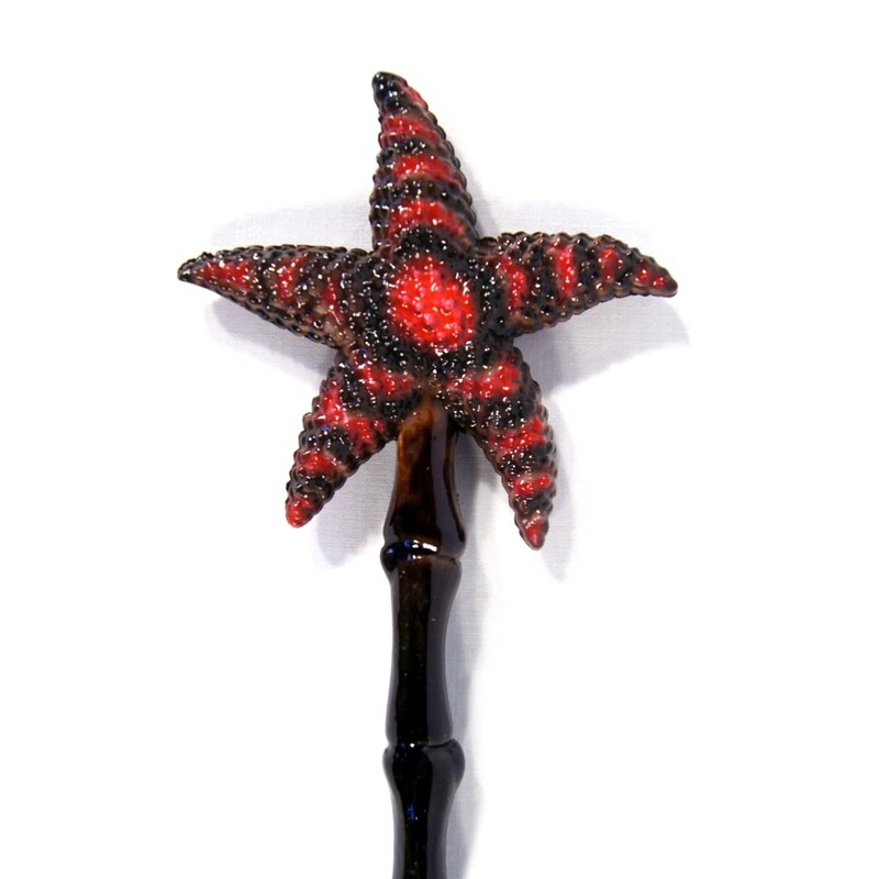 LX Hand Painted Back Scratcher Dark Red Starfish Bird 18"