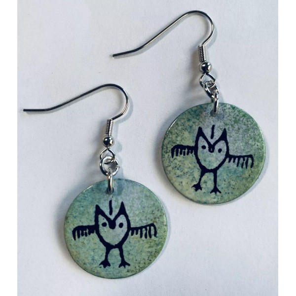 Hand Painted Pitroglyph Owl Sea Shell Earring. We do wholesale of our earrings so please let us know if you want to buy more.Thank you