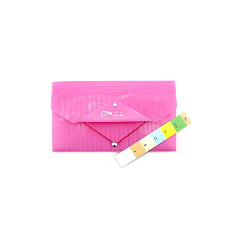 HAND® Pink Expanding 12 Section Ticket Receipt Wallet File Organiser with Coloured A to Z Tabs - Takes Sheets 250 x 120 mm