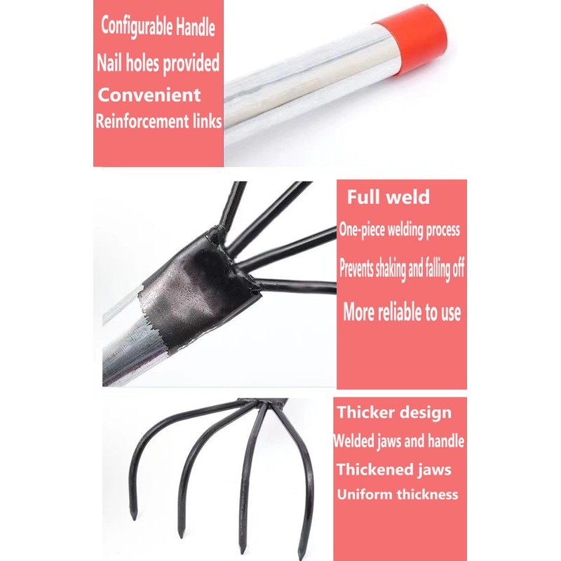 - High-Quality : This rake is manufactured with a carbon steel head and Stainless steel handle, easy to grip, compact and lightweight, which makes gardening easier