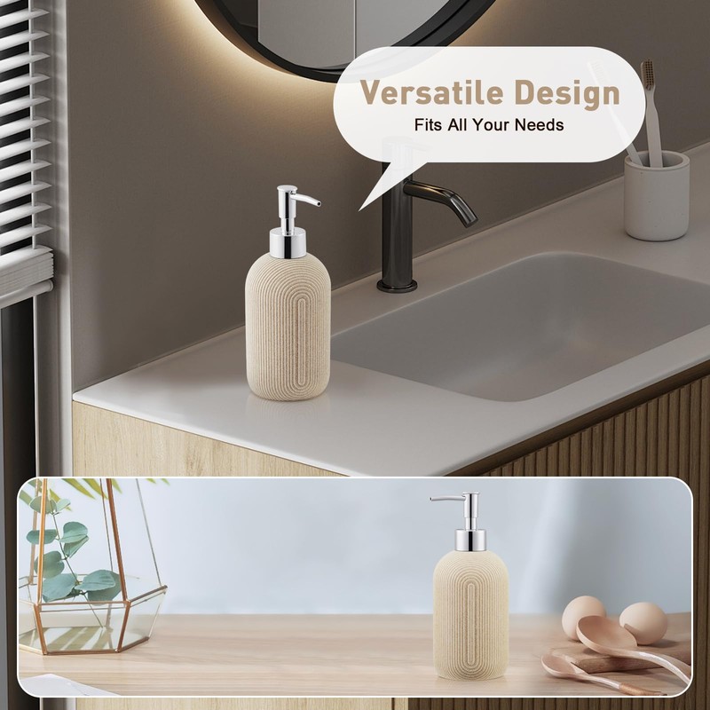 Hand Resin Soap Dispenser Set Bathroom, Dish Soap Dispenser for Kitchen with Pump, Elegant and Minimalist Modern Farmhouse Style Decor (Beige)