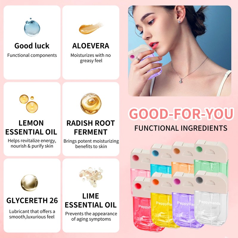 - [Spray Hand Sanitizer]:This hand sanitizer spray There won't bestrong alcohol smells and sticky hand sanitisers; each spray has a refreshing fragrance and functional ingredients to provide pleasant and effective protection for your daily life.
