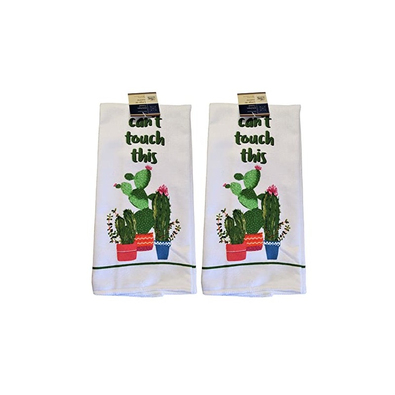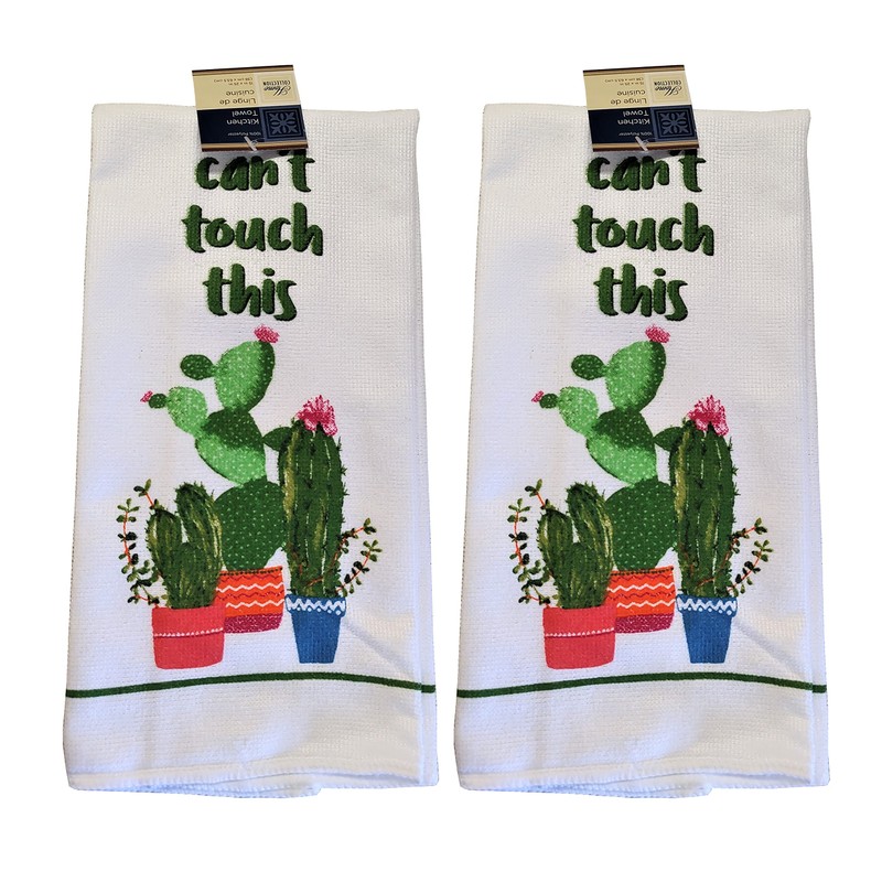 Hand Towel Set 2 Pack Decorate Your Kitchen Décor – Home Décor -Bath Towels Kitchen Linens (Can't Touch This Cactus)