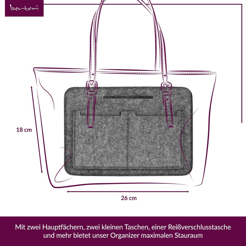 Handbag Organiser 'Folder Organiser Grey Felt Cat K "