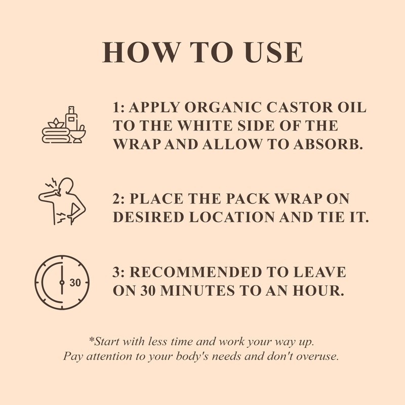 - EASY TO USE - Organic Castor Oil packs are simple to use. Apply Castor Oil to the castor patches and place them on the desired area. Use the adjustable straps to wrap around the body and enjoy its wellness benefits.