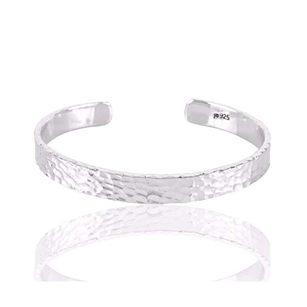 - Handcrafted Hammered 925 Sterling Silver Cuff Bracelet