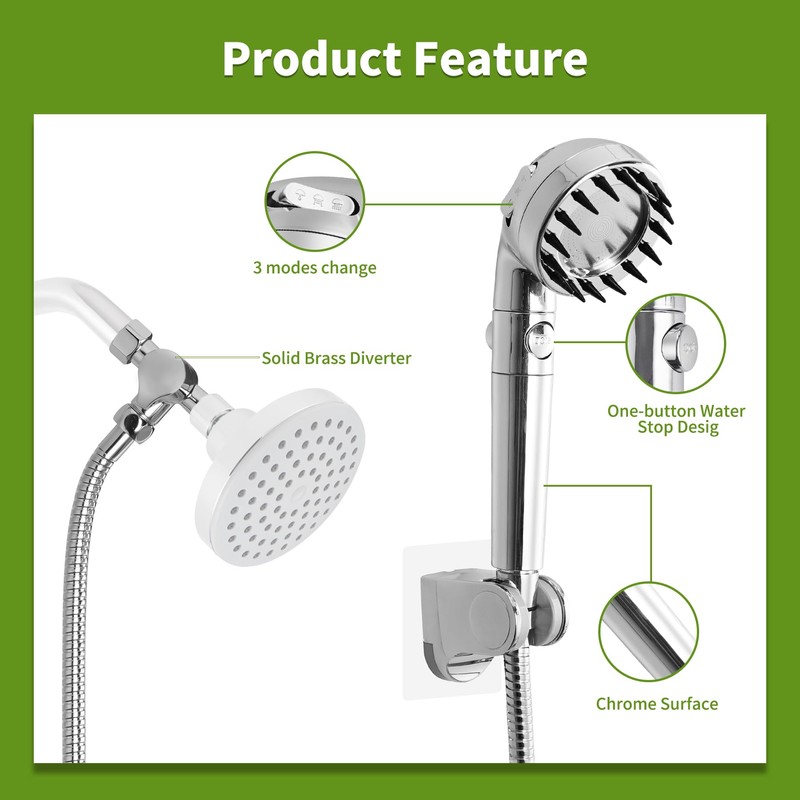 - Flow Mode Change Operation: Massage/Jetting/rainfall, easily switch among them with a side button on the handheld showerhead; A simple ON/OFF button provides a strong flow to rinse the pet's thick fur dirt and cuts off water flow at any time to save water