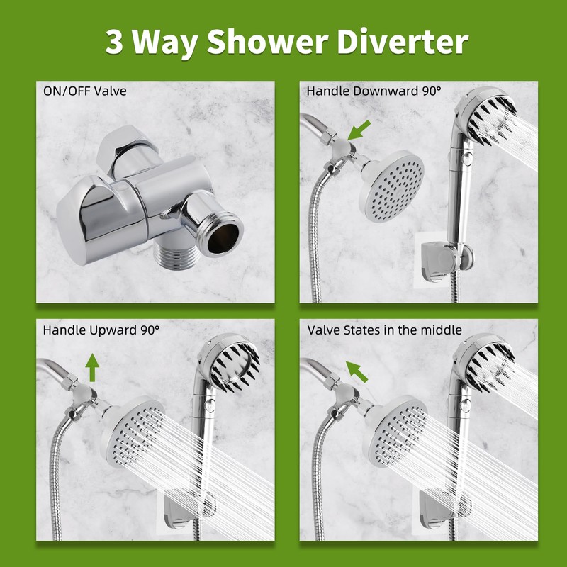 - 3-way Shower Diverter: Comes with a shower diverter (fix shower head is not included); Built from solid brass with chrome-plated, can withstand water pressure changes and anti-rust; Switches water flow smoothly between handheld sprayer and fixed shower