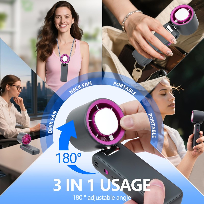 - [180° Foldable & Multi-Scene Use] Designed for ultimate convenience, this fan folds 180° for versatile use—hang it around your neck, hold it in hand, or place it on your desk. The Type-C port supports charging while in use, ensuring uninterrupted cooling wherever you go.