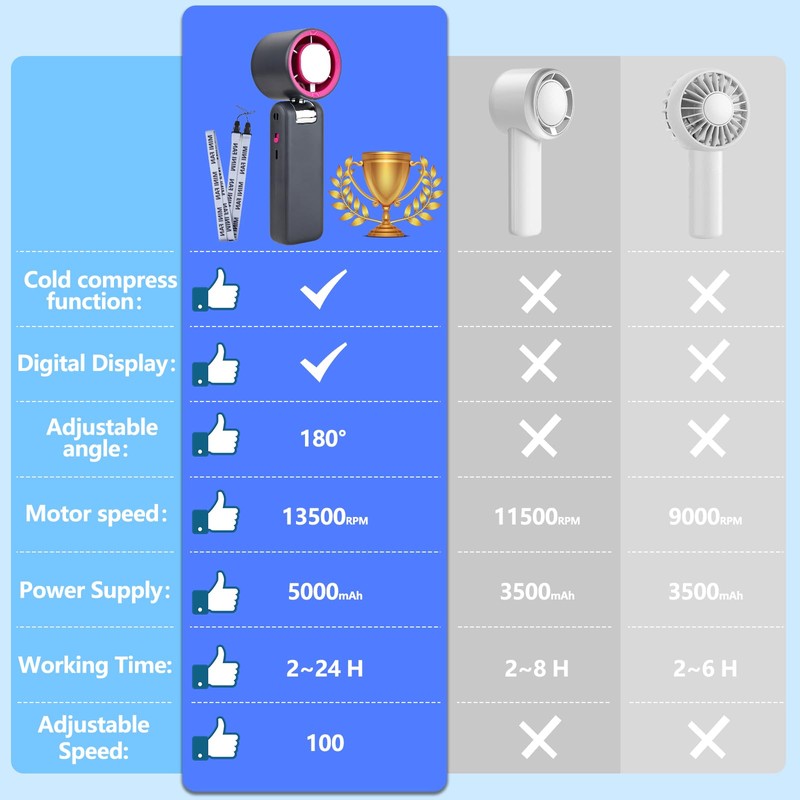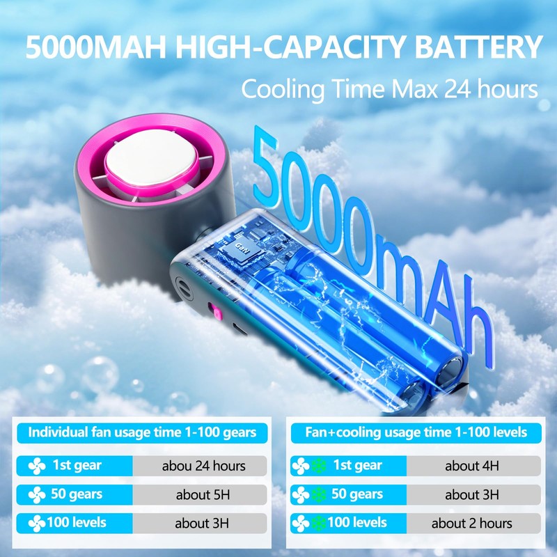✔ Longest Runtime – 5000mAh battery for 24H+ cooling