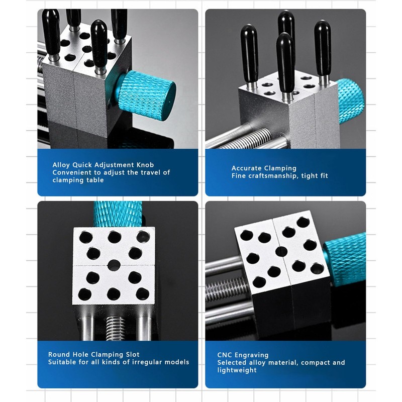 - Excellent Guard: The mini drill press vise clamp's 4 stainless steel rods and silicone protective sleeves offer excellent guard for your delicate components, ensuring their safety during handling. The inclusion of 10 spare holes further enhances the stability of the clamp, allowing you to securely grasp irregular and tiny parts without the of damage.