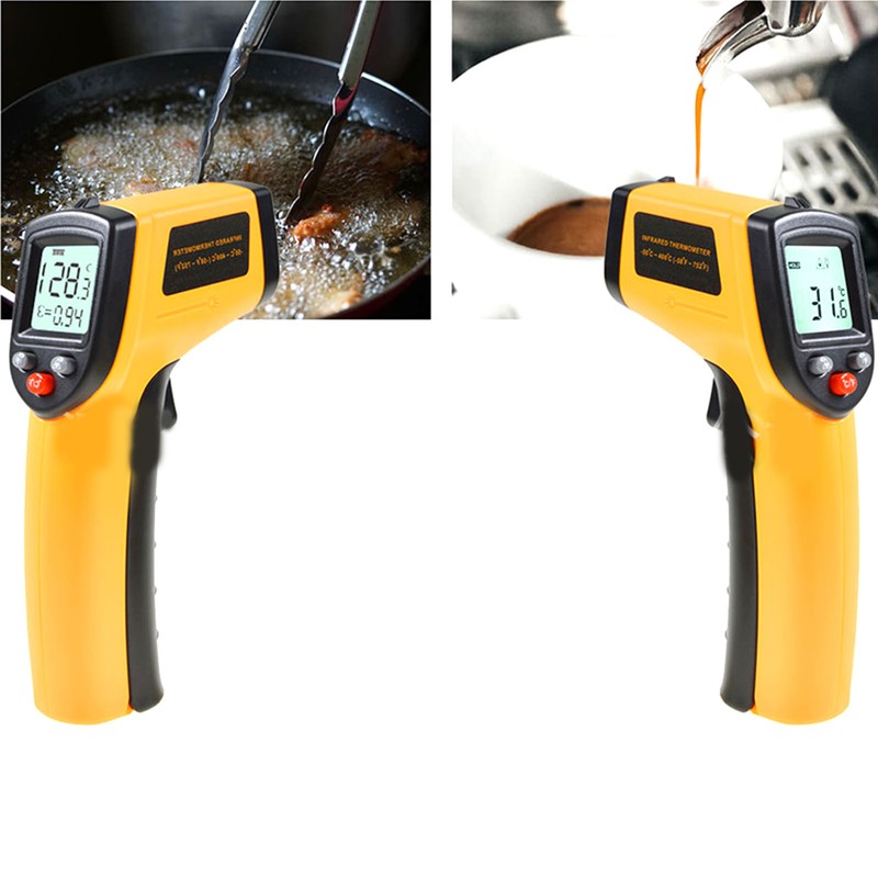 1、Application: Hot water pipe, hot engine parts, cooking surface, heat pipe insulation, electrical connection, lamp ballast, motor, bearing, hot asphalt wine cooler, swimming pool, fish tank, hot and cold food, heating air conditioning, etc. 2、Accurate Aiming: The laser collimator allows accurate aiming, and the infrared induction measurement is accurate with small error. 3、Clear Display: Simply refer to an object, the thermometer can quickly measure the result and clearly display it, and read its temperature. 4、Energy Saving: Laser switch, 20 second automatic power off and temperature data maintenance, energy saving and environmental protection. 5、Easy to Use: This thermometer is easy to use, it can be directly aimed by induction, and can be used by the elderly and children.