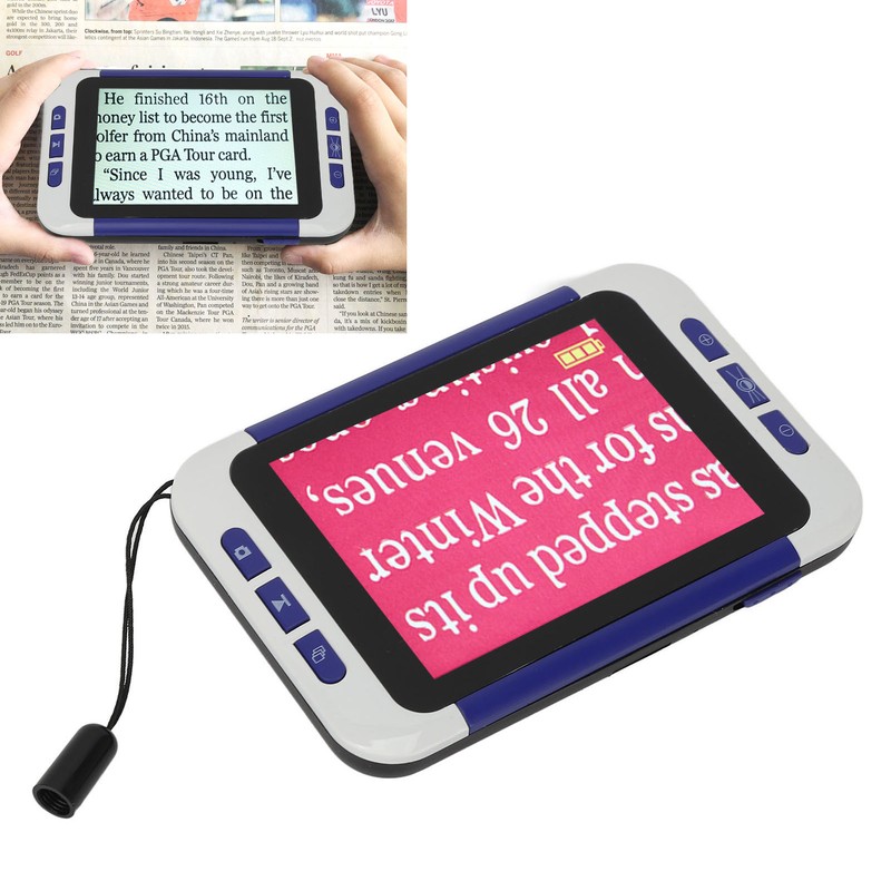 1、2‑32X Magnifying: Press the button to continuously select magnification from 2x to 32x for clear viewing of text, photos, and other materials. 2、26 Modes: Video digital magnifier has 26 color modes options and adjust screen brightness, which can customize the viewing experience for you. 3、Widely Use: Electronic video magnifier can be used for reading, writing, viewing photos, etc. suitable for people with poor view, the elderly, etc. 4、Save Power: With intelligent power saving function, after 3 minutes of still images and keyless operation, the video magnifier will automatically turn off. 5、Wide Connection: Compatible with various devices such as TVS, monitors and projectors, electronic reading aid enables the user to see the image on a larger screen.