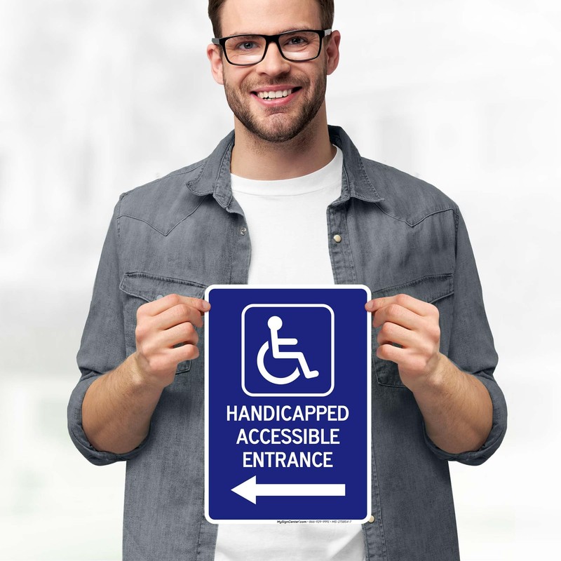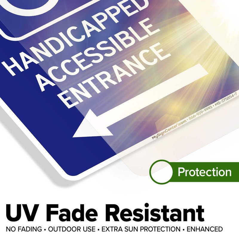Handicapped Accessible Entrance With Left Arrow Sign, 10x7 Inches, 4 Mil Vinyl Decal Stickers Weather Resistant, Made in USA by My Sign Center