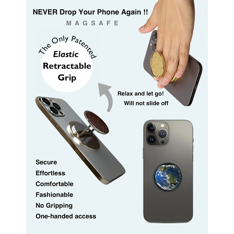 - RETRACTABLE & REMOVABLE GRIP THAT LAYS FLAT WHEN NOT IN USE AND IS EASILY REMOVABLE FOR MAGNETIC CHARGING: The grip lays virtually flat when not in use but grips your fingers for a secure hold. Its super strong magnet holds tightly to the phone and will not come off unless you remove it and once you do simply place your phone into any magnetic charger. Once charged just place the grip over the magnetic ring for a secure hold. Android and iPhone compatible.