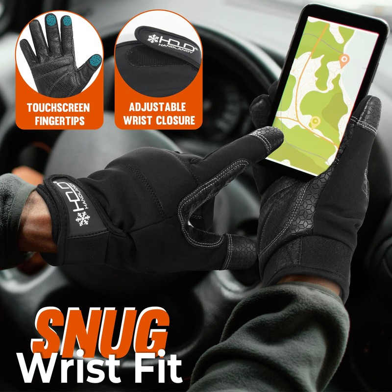 HANDLANDY Winter Work Gloves with Grip for Men & Women, Utility Mechanic Touch Screen Working Gloves for Gardening, Driving, Tool Handling, Construction (Black, XX-Large)